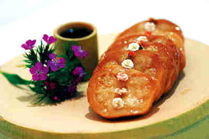 明清時期,寶應(yīng)白蓮藕粉被列為皇室貢品,有“鵝毛雪片”之稱;寶應(yīng)藕菜“蜜餞捶藕”滿譽江淮,為四方賓客所稱道。當時寶應(yīng)名士喜好 藕菜,產(chǎn)生了“全藕席”,室供碗蓮盆景,壁掛荷花詩 畫,席中放一花瓶,以清水插鮮荷花數(shù)朵,色香味具全, 頗具雅趣。當今揚州的“全藕宴”列為寶應(yīng)十大名菜之首,給您帶來清淡、涼爽、馨香的感受。