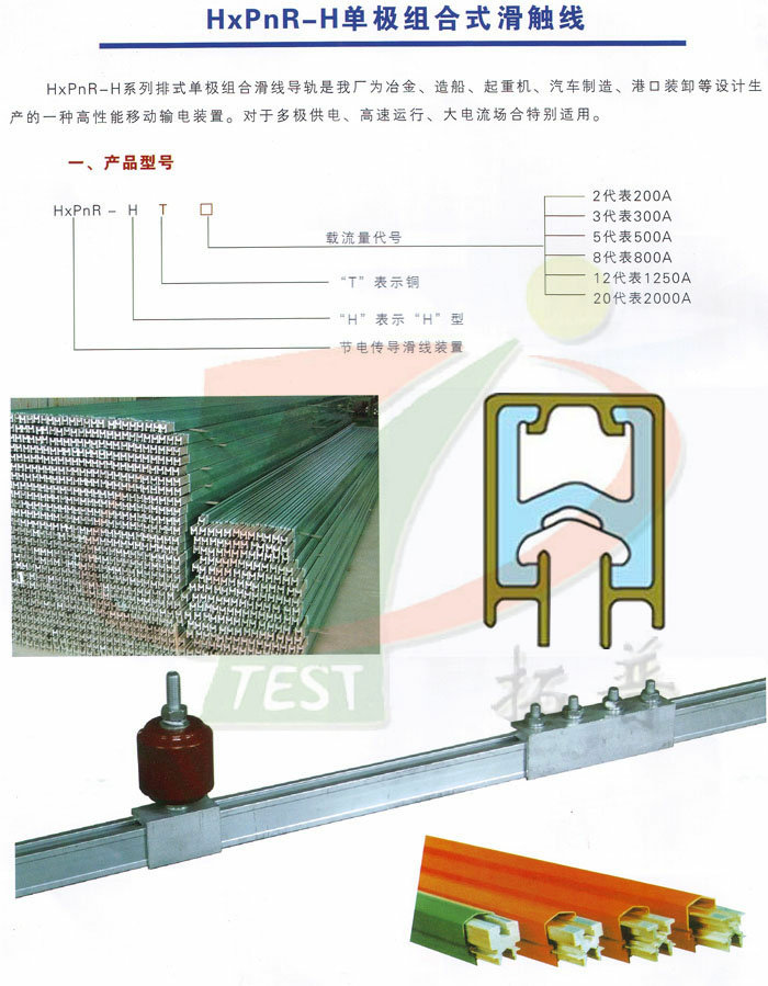 HXPnR- H系列單極組合式滑觸線由H型鋁合金本體導(dǎo)軌加壓V型不銹鋼滑接帶、PVC絕緣外殼、外置式集電器以及懸吊、固定等組件組合而成。該產(chǎn)品以其設(shè)計(jì)新穎、結(jié)構(gòu)合理、維護(hù)方便、使用安全等特點(diǎn)被廣泛應(yīng)用于電流較大、使用頻率較高、運(yùn)行速度快和環(huán)境較差的場(chǎng)合。