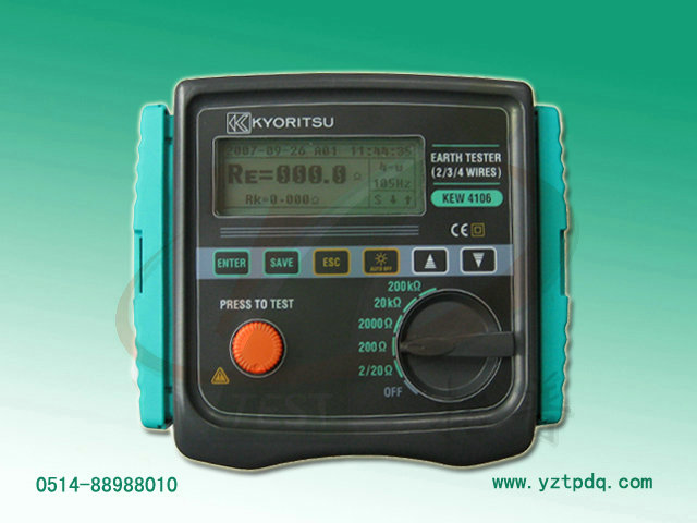 KEW 4106接地電阻測試儀是一款數(shù)字式智能化接地電阻測試儀,可進行測試環(huán)境參數(shù)測量Ust(干擾電壓),F(xiàn)st(干擾頻率)。具有數(shù)據(jù)傳輸(和PC連接),在PC端可進行數(shù)據(jù)處理分析功能。且防水防塵功能強,以防水防塵IEC60529(IP)為準,可在惡劣環(huán)境下進行測試。